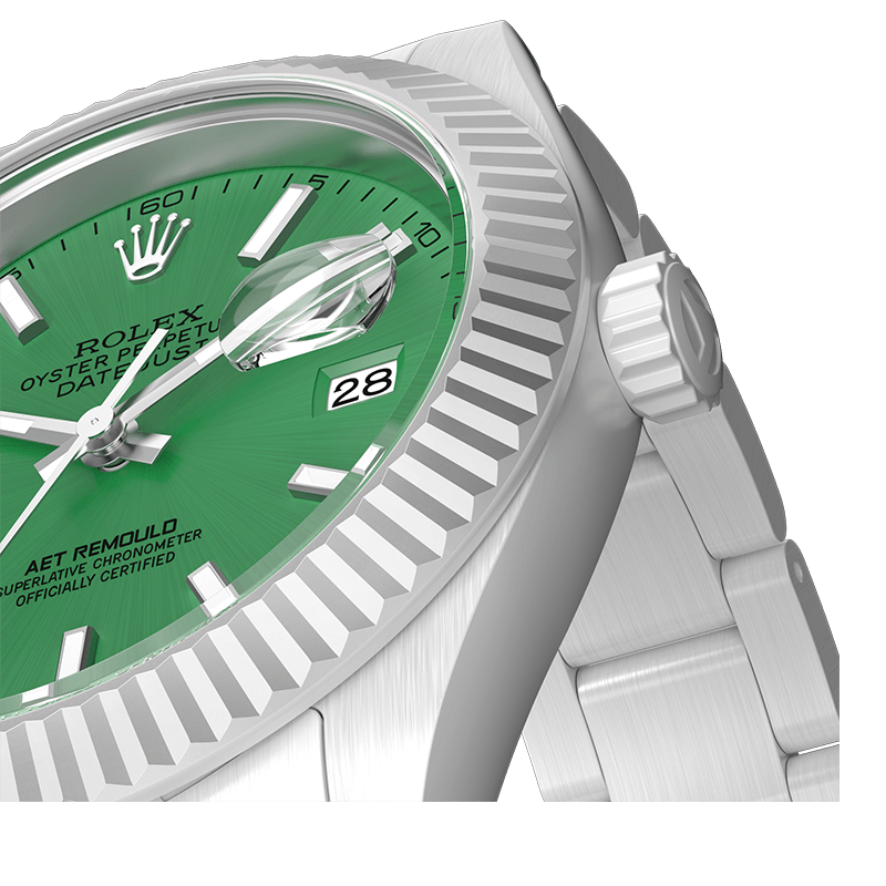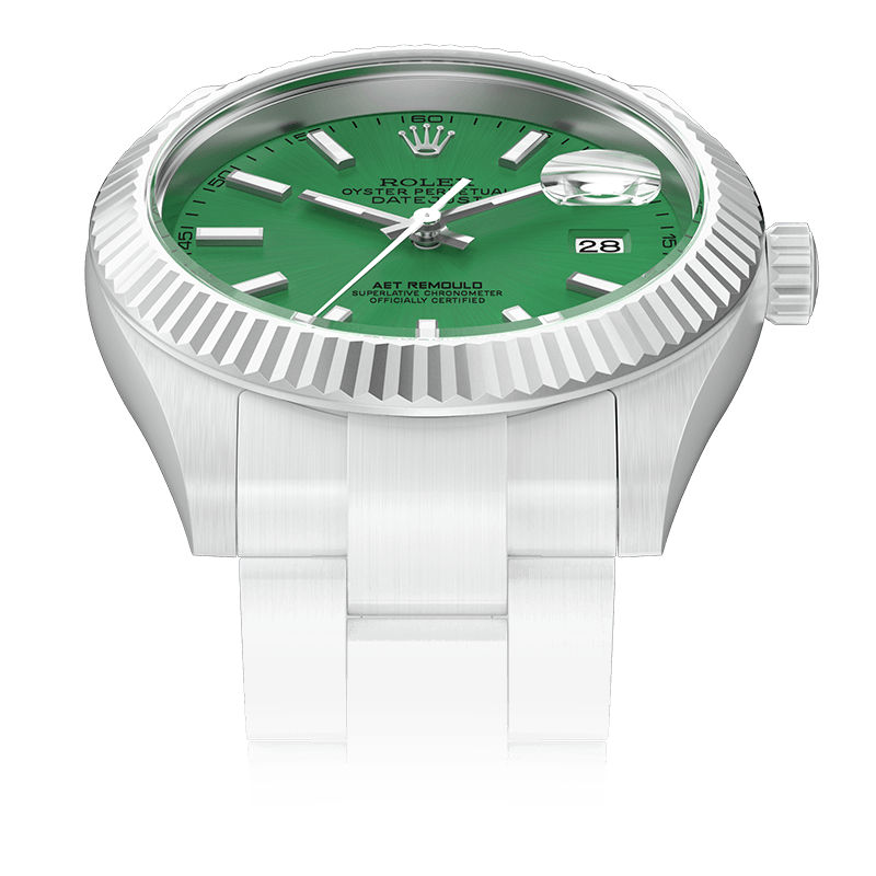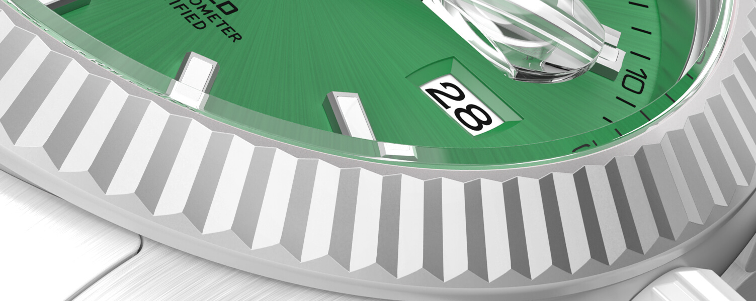 綠色錶盤代表了不倫瑞克市的活力,象徵著獨立思考、創新和文化多樣性,正如城市生活本身一樣。 3點位置設有日曆窗,經凸透鏡放大更清晰易讀。表冠採用白色陶瓷打造,並刻有品牌LOGO印記。