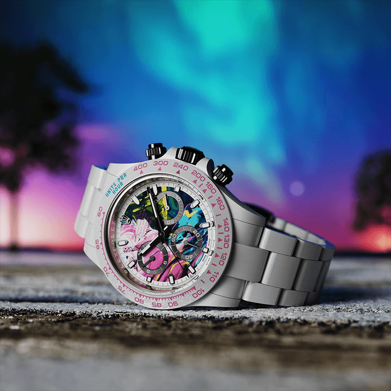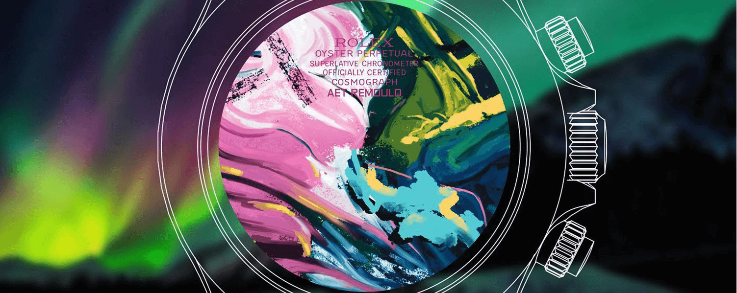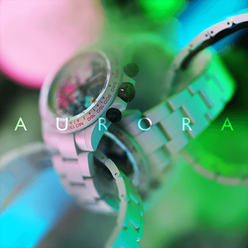 オーロラは世界で最も美しく奇抜な自然景観であり、燦爛多彩なプラズマ現象です。これは元素の衝突による壮麗な光景で、もしかして衝突は新しいものを生み出すのかという思考を引き起こします。例えば色の衝突、伝統的なマニュファクチュールと現代の材料技術の衝突は新しい時計芸術をもたらすことができます。オーロラに示唆を得ており、AET REMOULDは宇宙の広大さとミステリーを吟味し、多彩で壮麗な自然景観をデイトナに彫刻しました。