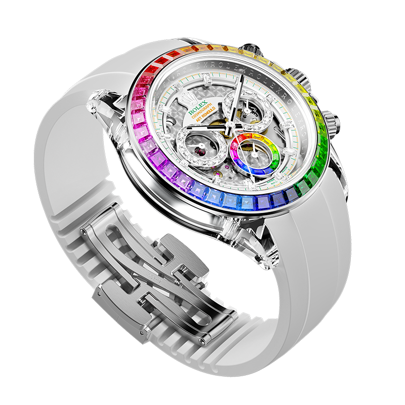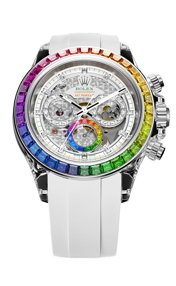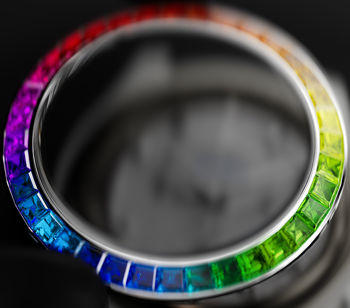 寶石鑲嵌始終是高硬度材質上的工藝困難。 AET REMOULD 針對此開發出專屬鑲嵌技術,透過微米級定位系統將寶石精準嵌入錶殼結構,穩固持久,且不破壞材質本身。整個鑲嵌過程由資深工藝家純手工完成,確保每顆寶石在弧度、角度與高度上的精確統一,實現技術與美學的深度融合。
