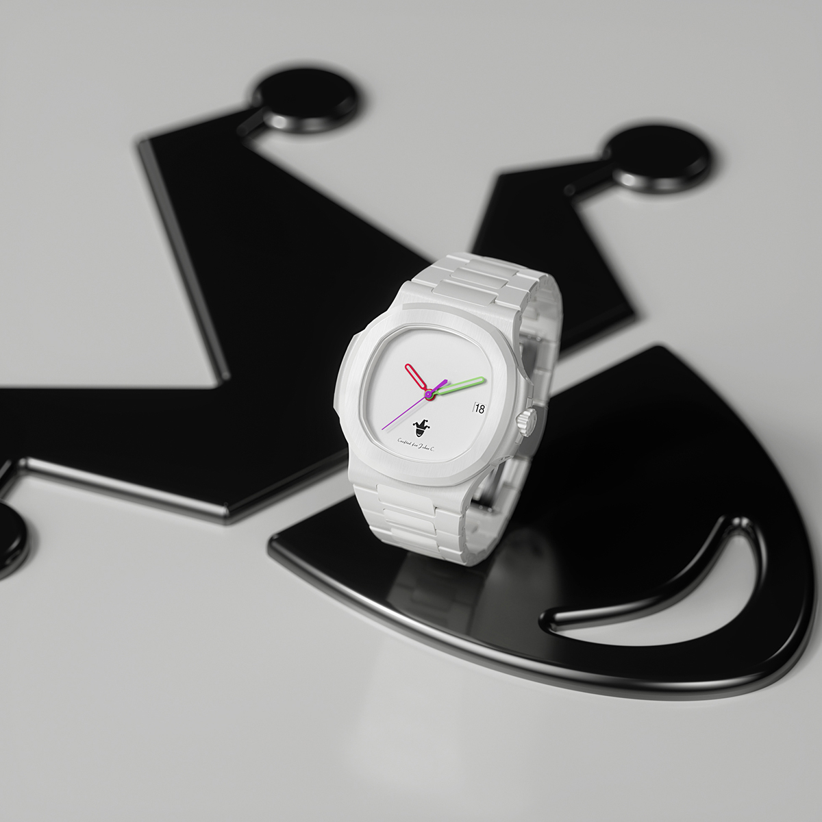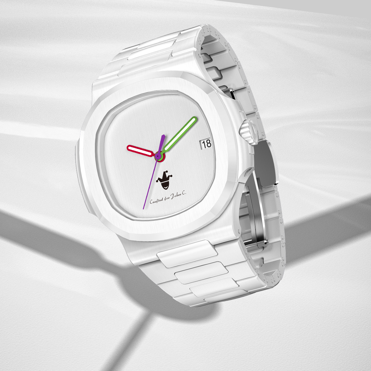客户带着对小丑这一角色的热爱与好奇找到我们,希望设计师能在以白色陶瓷打造的“Whitespace”腕表上,留下小丑的印记。